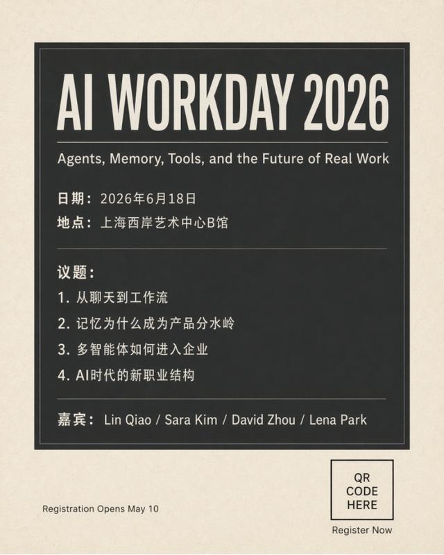 主标题:AI WORKDAY 2026副标题:Agents, Memory, Tools, and the Future of Real Work日期:2026年6月18日