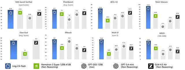 Ling-2.6-flash追求的是在控制token消耗的前提下,保持对Agent任务的强竞争力,主要具备以下三大核心能力: