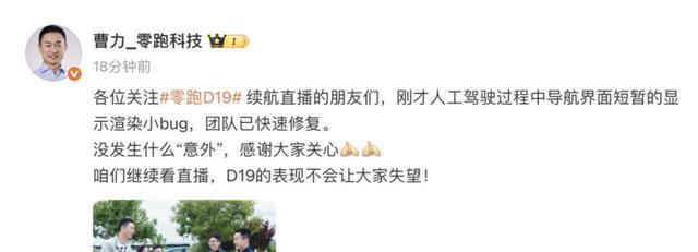 对此,零跑科技高级副总裁曹力公开回应称,车辆在人工驾驶时,导航界面出现短暂的渲染显示小问题,目前团队已迅速修复。他表示并未发生所谓“意外”,并对公众的关注表示感谢。