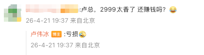 卢总也是直呼「亏钱」,纯纯交朋友价了。
