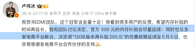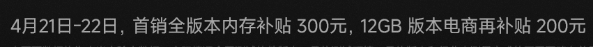 首销旗舰全版本补贴 300,12GB 版本再补 200。