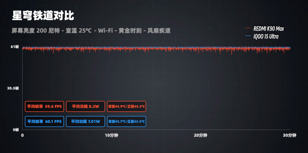 iQOO 15 Ultra 平均功耗只有 7W,而 K90 Max 平均功耗 8.2W。
