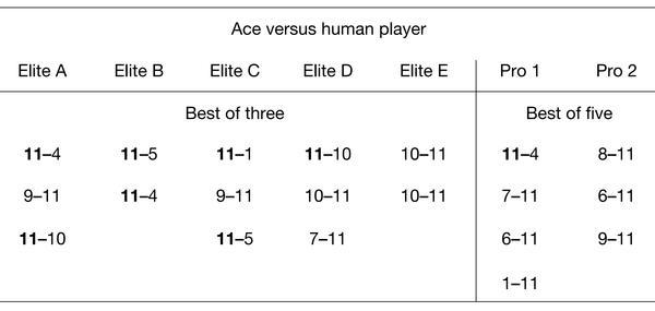 与Ace对战的一大难点在于,这款机器人没有眼睛可以观察,没有肢体语言可以解读,而且在比分10-10平局时也不会屈服于压力。与Ace交手的职业选手平真由香在采访中坦言该机器人的优势“在于它很难预测,而且它不会表现出任何情绪”。