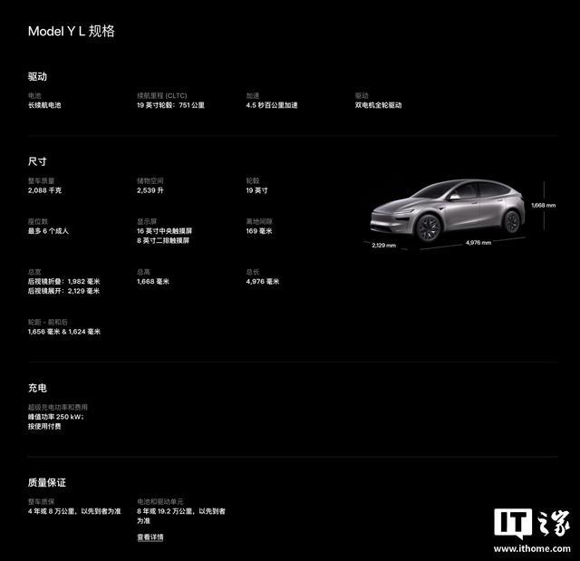IT之家附 Model Y L 规格如下: